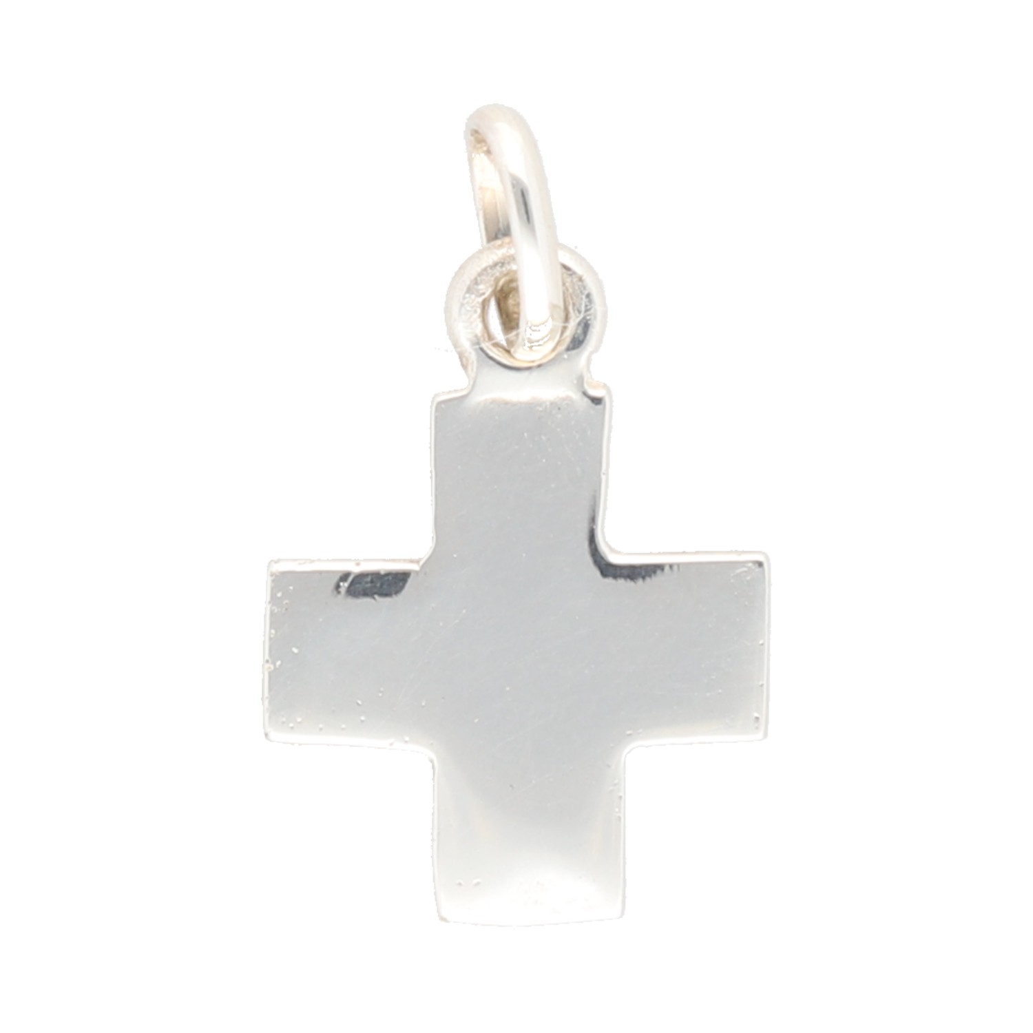 Gracias a su tamaño compacto de 16 mm x 16 mm, esta cruz se adapta muy bien a colgantes cortos, cadenas finas o incluso a llevarse como charm en pulseras. Es un diseño sutil que puede lucirse tanto de forma individual como combinada con otros elementos.